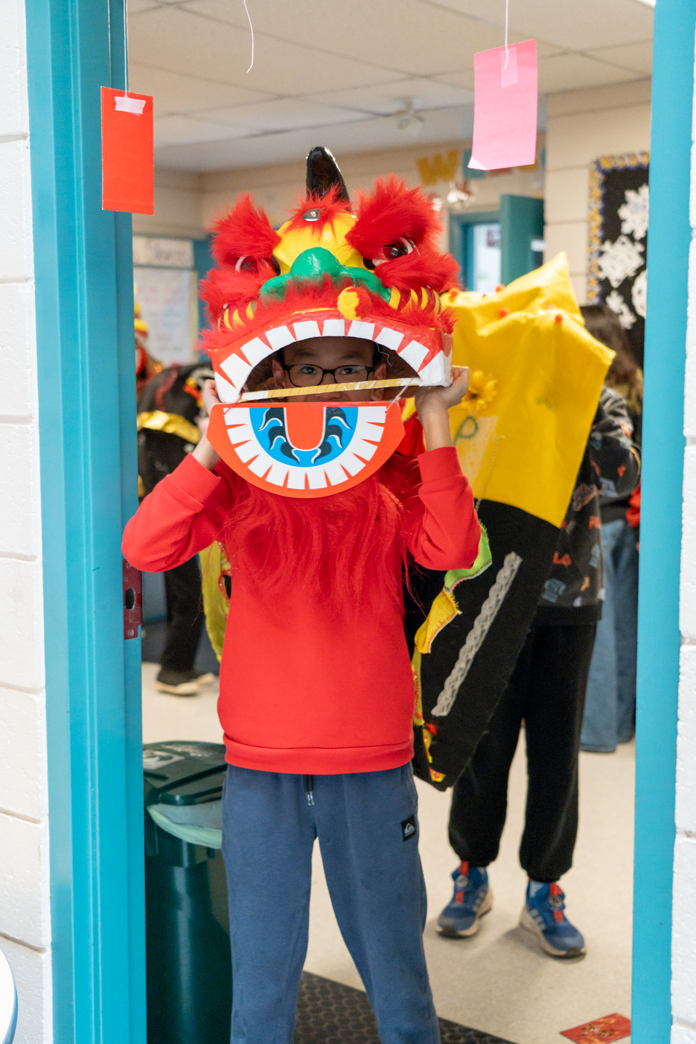 Phong’s favourite part, however, was watching the lions grab the red envelopes hanging from classroom doorways and eating them to symbolize good luck and prosperity.