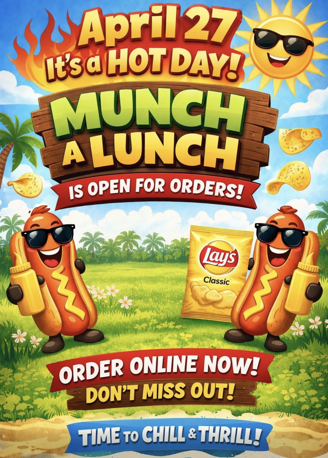 The Hot Dog lunch for Monday, April 27th is now open on Munch a Lunch. These orders close on Wednesday, April 22 at 8:00 pmPlace your order on Munch A Lunch as follows: