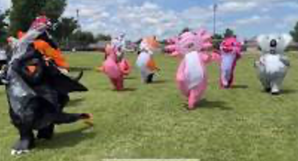 If we raise $3000—volunteer staff will complete in a race at the next assembly wearing blow up costumes