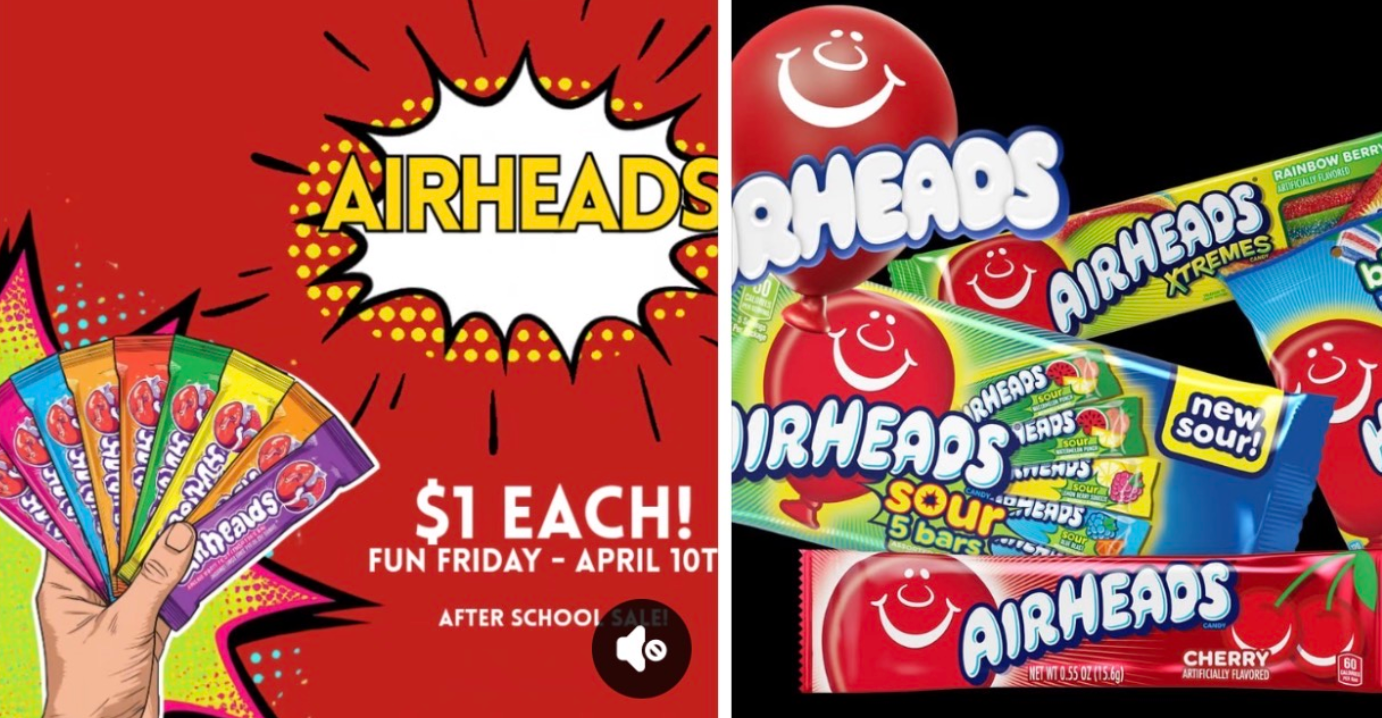Airheads will be sold at the front of the school for $1.00 each