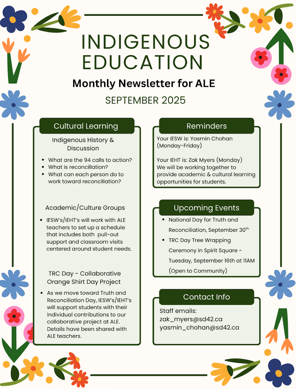 - Sept. 30 – National Day for Truth & Reconciliation (No School)