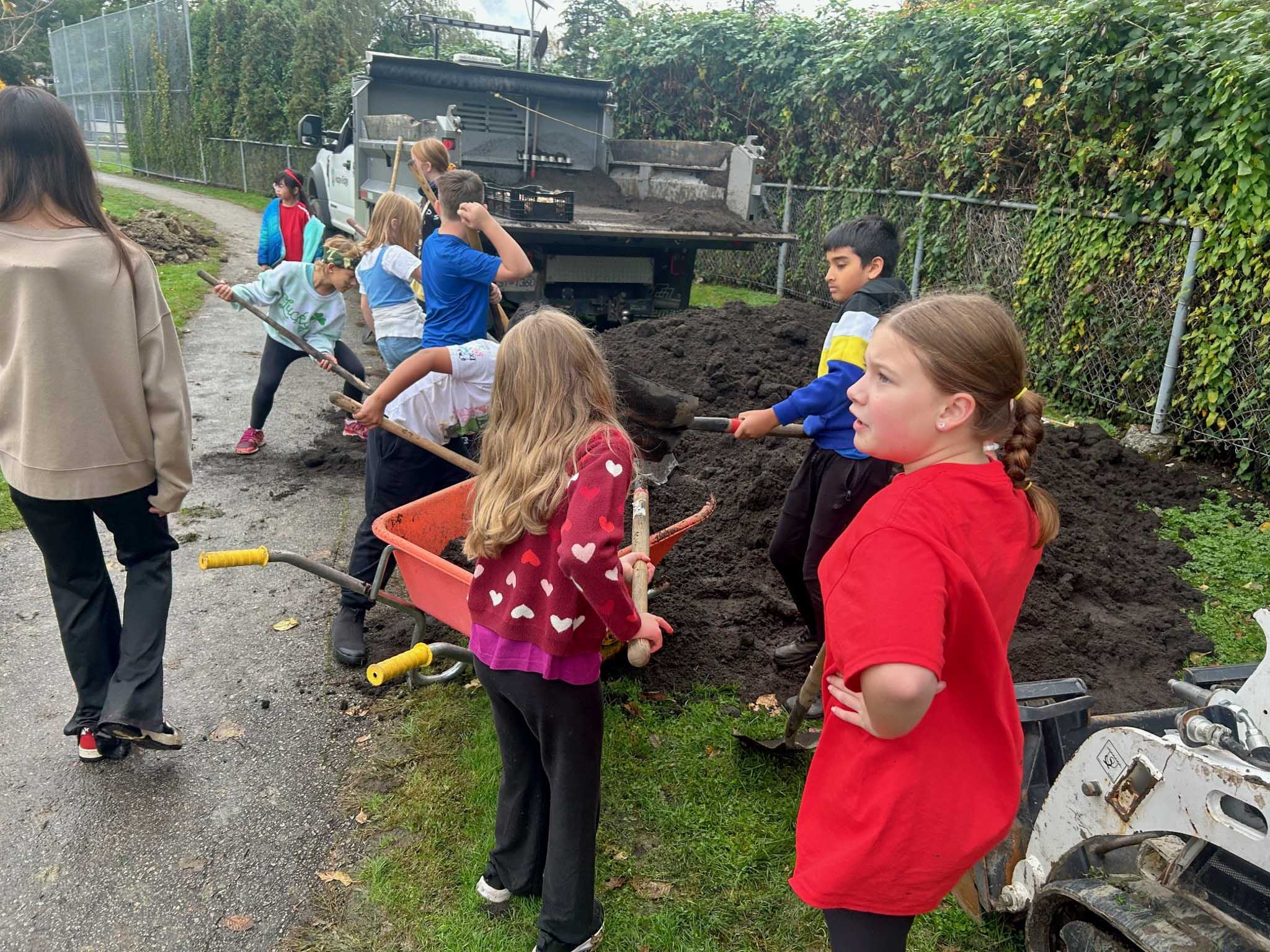 Students at Alexander Robinson Elementary rolled up their sleeves last month to plant nearly a dozen trees next to the school as part of a planting drive with the City of Maple Ridge.