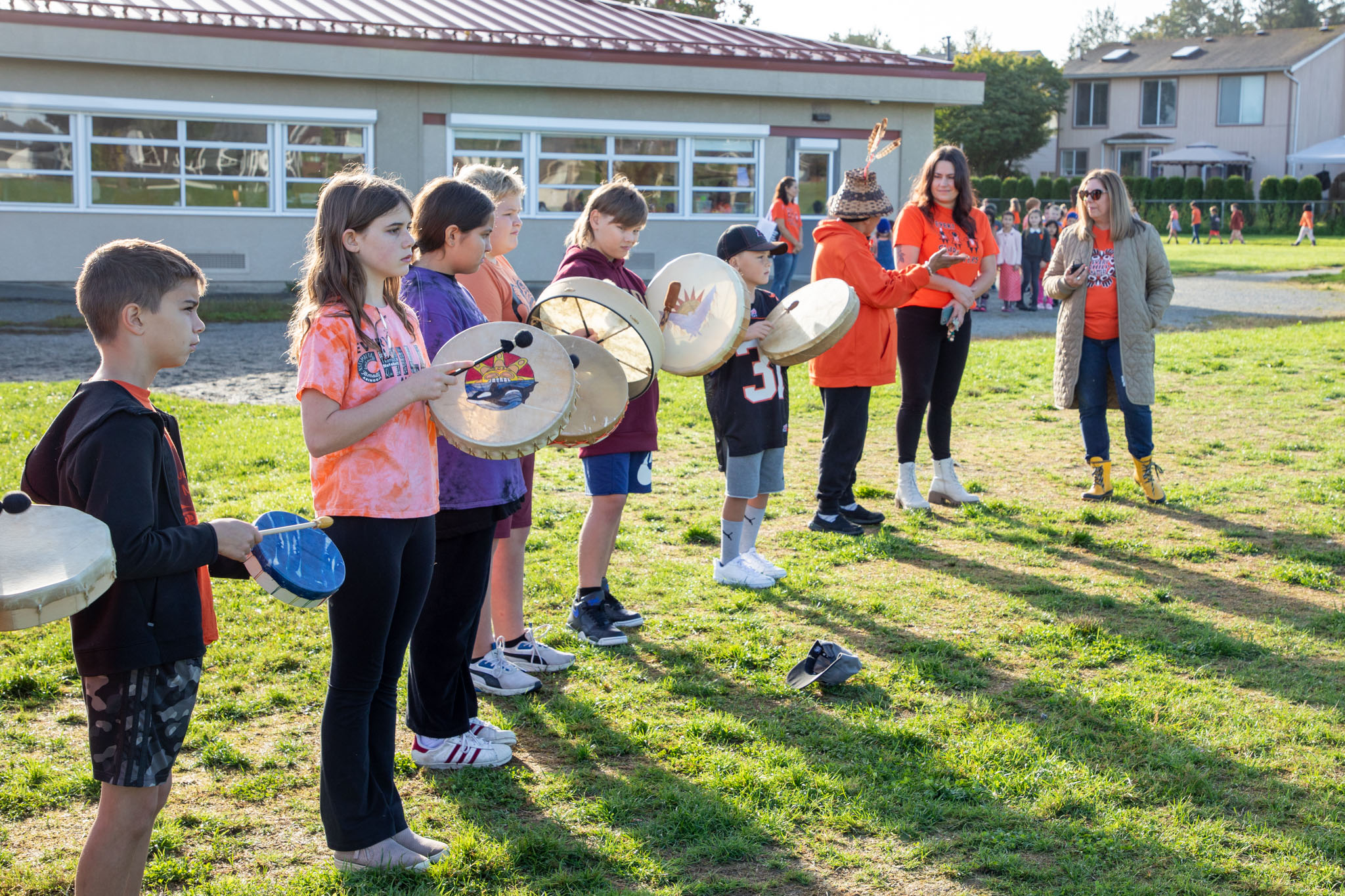 Students at Alouette Elementary took part in a drumming circle at the end of September for Orange Shirt Day.