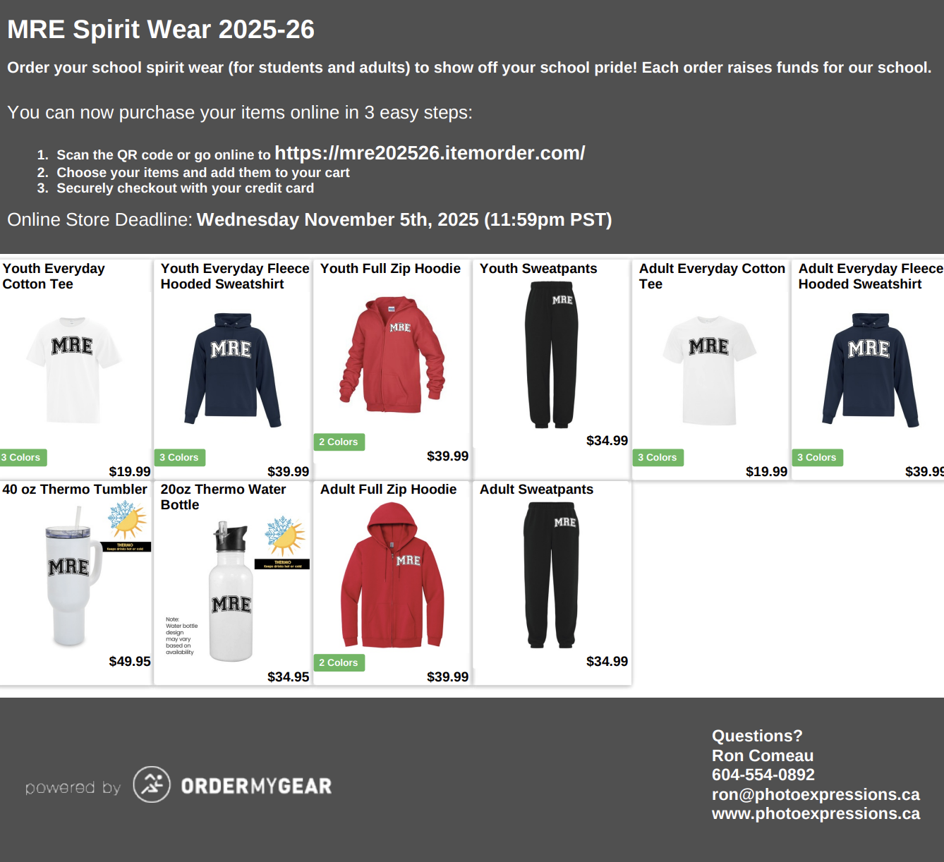 Questions? Email us at pac.mre@gmail.com or find us on Facebook: Maple Ridge Elementary PAC